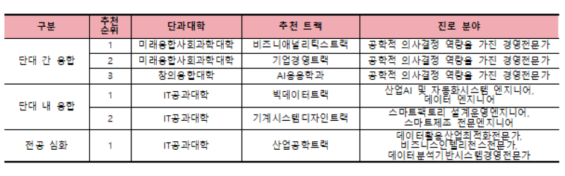 - 주요 직업 : 데이터 사이언티스트, 머신러닝 엔지니어, 비즈니스 인텔리전스 전문가, 고객데이터 분석가, 산업 데이터 컨설턴트, 공급망 최적화 전문가, 프로세스 개선 전문가, 운영연구분석가