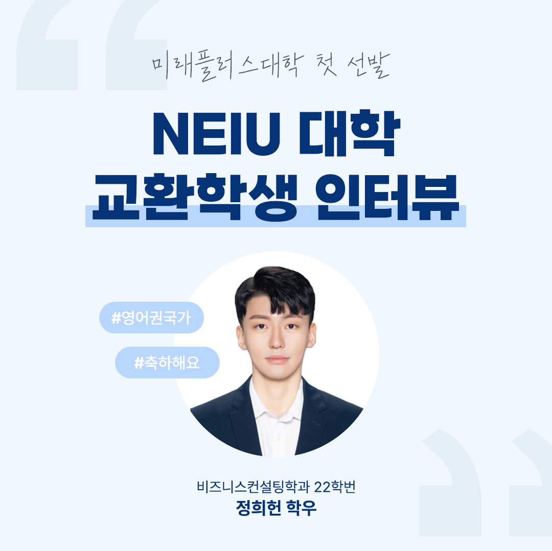 비즈니스컨설팅학과 22학번 정희헌 학우 교환학생 선발- 작성자 미래플러스대학 교학팀
