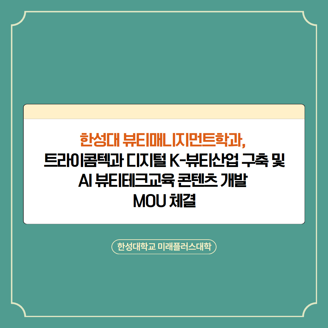 한성대 뷰티매니지먼트학과, 트라이콤텍과 MOU 체결- 작성자 미래플러스대학 교학팀