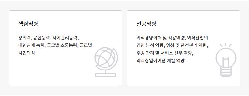 이러한 시대적 흐름에 맞춰, 호텔외식 분야에 특화된 경영 전문 지식과 조리 실무 능력을 겸비한 인재는 다음과