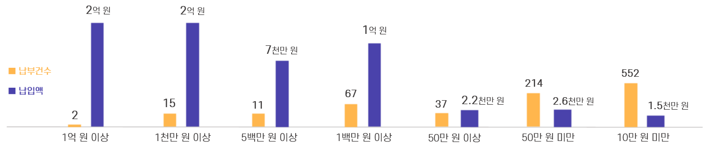 | 납입금액 구간 | 납부건수 | 비율 | 납입액(원) | 비율 |