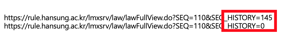 https://rule.hansung.ac.kr/lmxsrv/law/lawDetail.do 해당 사이트로 접속하여 필요한 규정의 url을 복사하여 사용합니다.