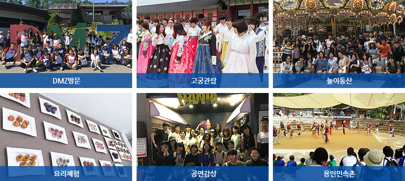 문화체험은 유학생 대상으로 한국과 한국 문화의 이해를 돕기 위한 프로그램입니다. 모든 수강생에게 한 학기당 2회 문화수업을 진행하고 있습니다. 다양한 문화체험을 통해 한국 문화뿐만 아니라 한국을 좀 더 가깝게 느낄 수 있습니다. 본 문화체험은 언어교육센터와 체험 장소 사정에 따라 변경될 수 있습니다.