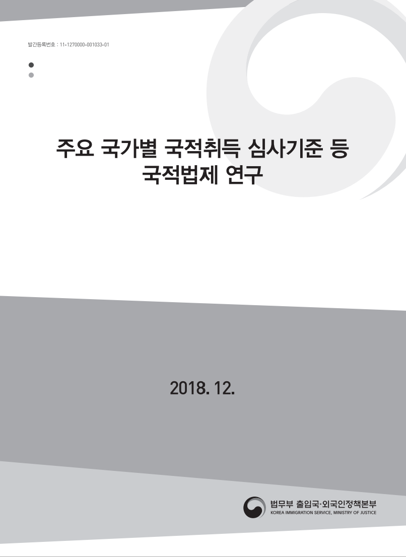 주요 국가별 국적취득 심사기준 등 국적법제 연구 (2018)- 작성자 김서희
