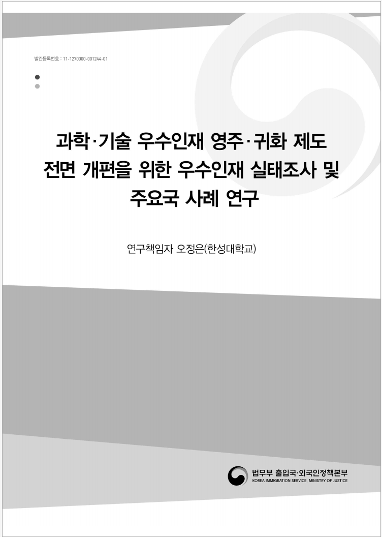과학기술 우수인재 영주귀화제도 전면 개편을 위한 우수인재 실태조사 및 주요국 사례 연구 (- 작성자 김서희