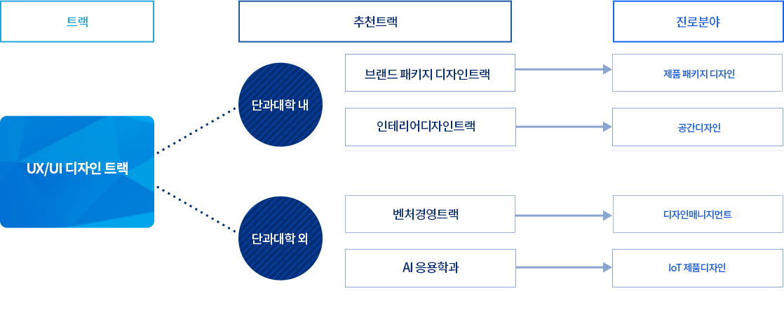 - UX디자이너, UI디자이너, UX컨설턴트, 앱디자이너, 인터랙션디자이너, 유저리서치전문가, IT제품디자이너, 운송수단디자이너, 가구디자이너, 생활용품디자이너, 뷰티융품디자이너, 서비스디자인컨설턴트, 서비스경험디자이너, 디자인씽킹퍼실리테이터, 사회혁신디자이너