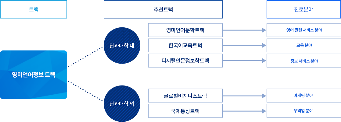 - 영미언어정보트랙은 실질적 영어 구사력을 바탕으로 영어에 대한 총체적이고 전문적인 지식과 논리적이고 분석적인 사고력을 지닌 인문학도를 양성하고자 한다.