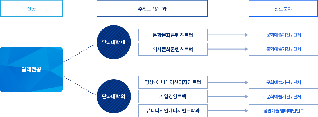 - 주요 직업 : 전문무용수, 안무가, 예술강사, 문화예술지도자