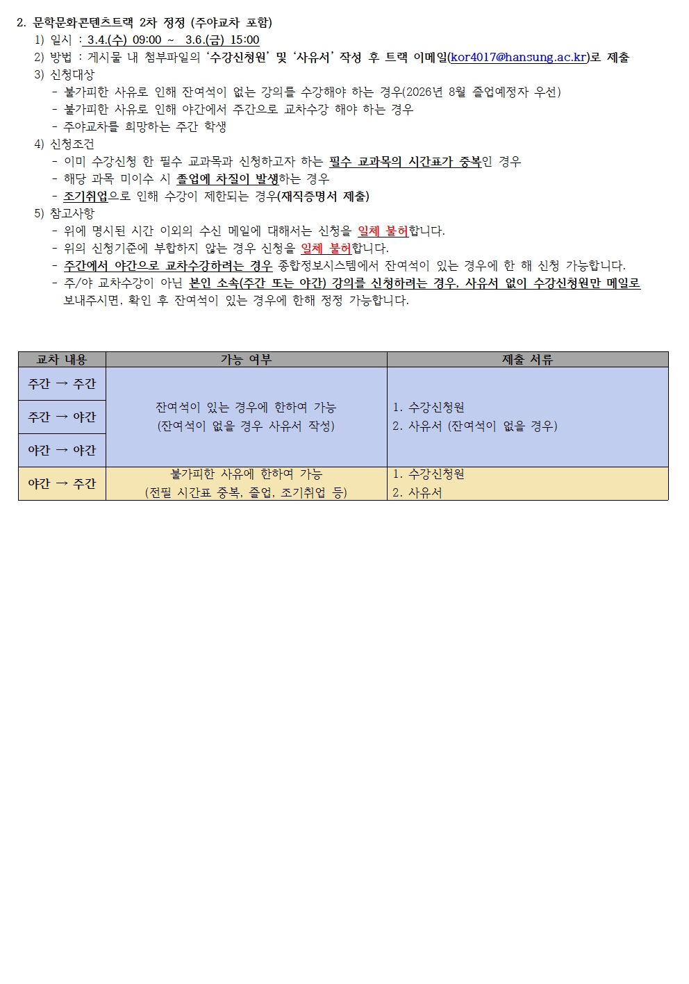 [문학문화콘텐츠트랙] 2026-1학기 1,2차 수강정정(서면신청) 안내