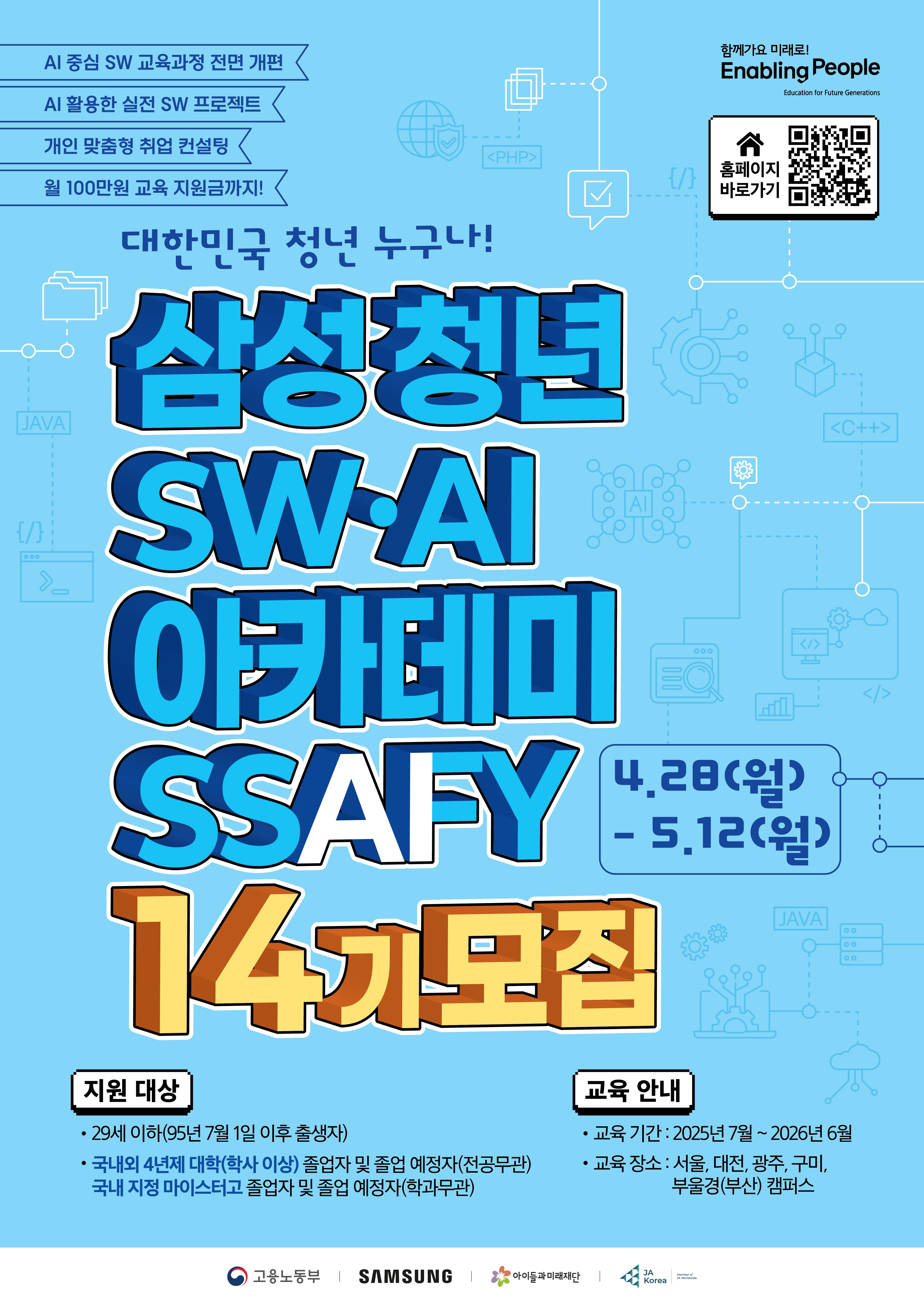 삼성청년 SW·AI 아카데미에서 14기 교육생을 모집합니다.
