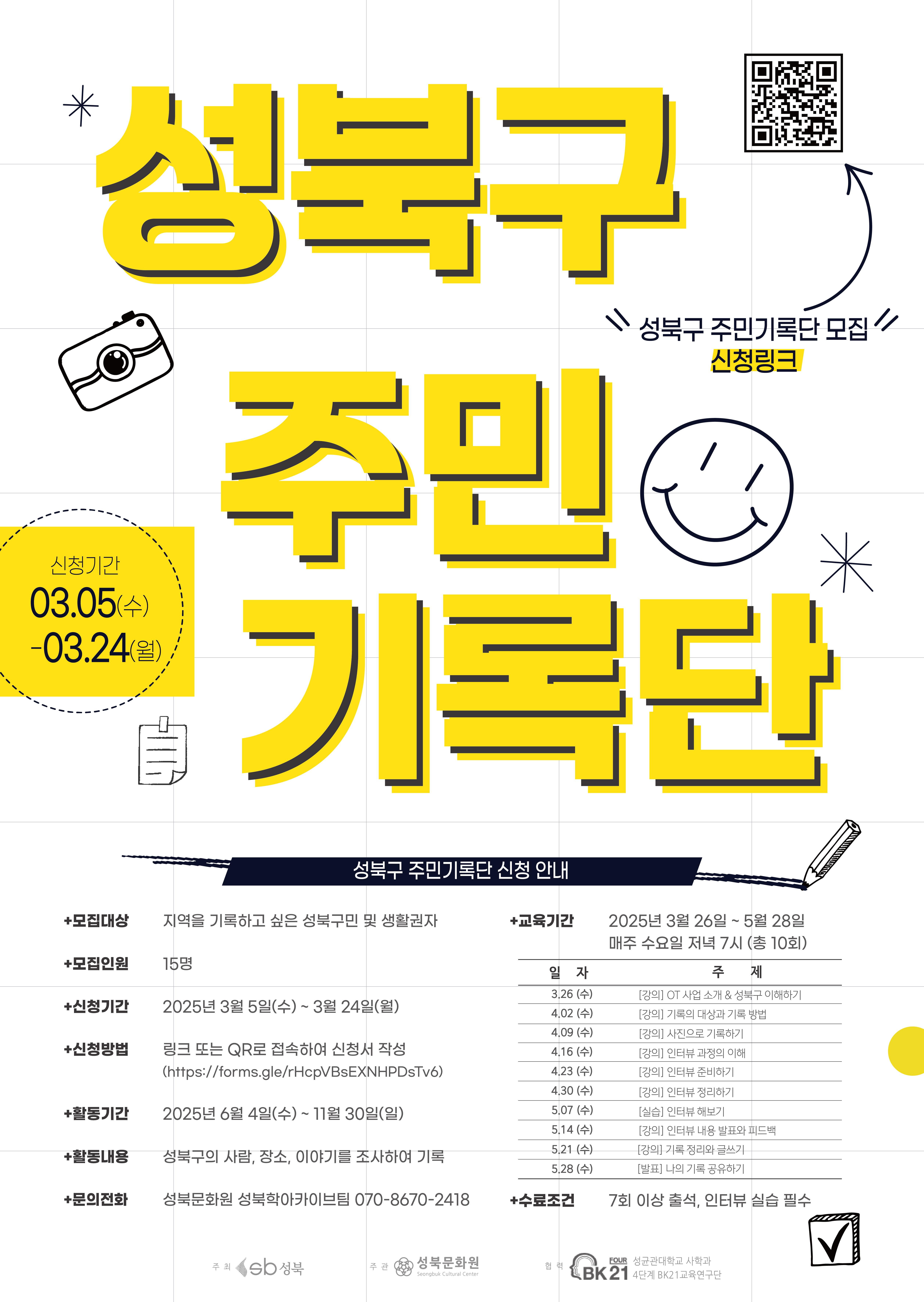 성북문화원에서 2025년 성북구 주민기록단 교육생을 모집합니다.