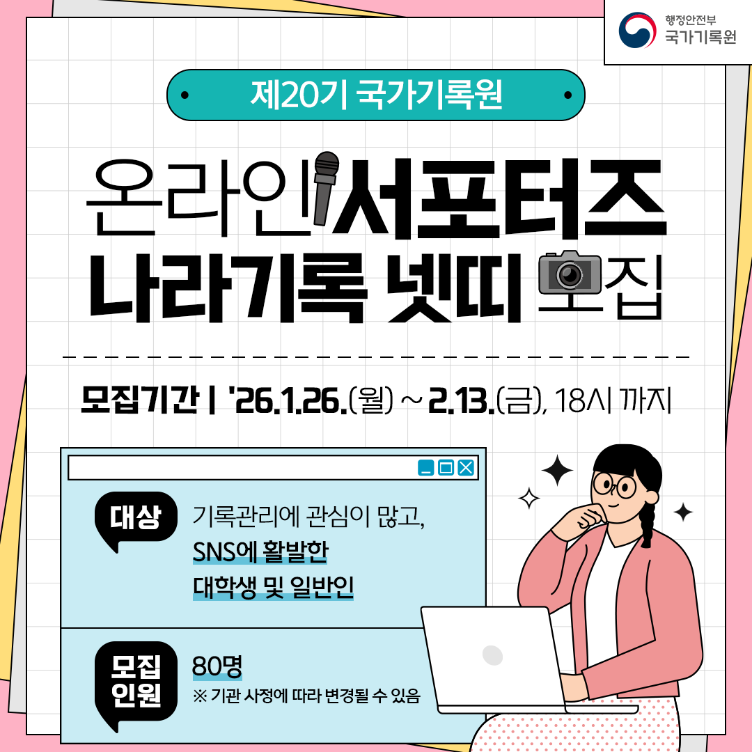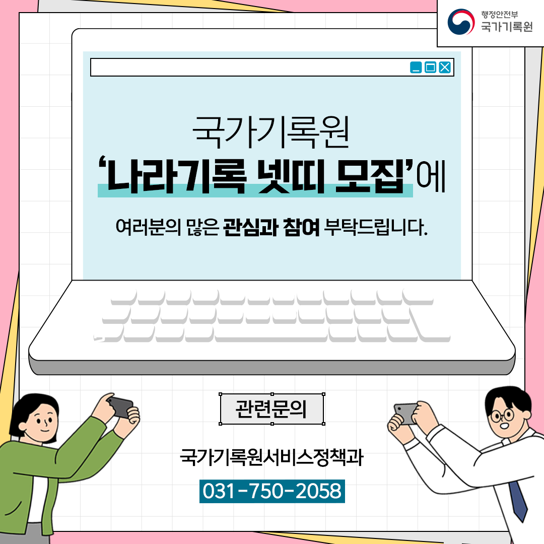 국가기록원에서 온라인서포터즈(나라기록 넷띠) 회원을 모집하고 있으니 많은 관심 부탁드립니다.