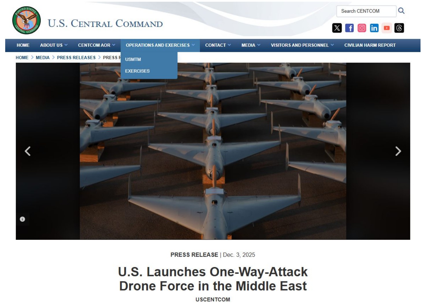 최근 미국 중부사령부(CENTCOM)가 중동 지역에 배치한 저비용 공격드론을 두고 '샤헤드를 베꼈다'는 언론의 평가가 나왔다. 12월 3일 CENTCOM이 공식 발표한 'Task Force Scorpion Strike(TFSS)'는 이란제 샤헤드-136 드론을 역설계해 개발한 FLM-136 드론을 편대(squadron) 단위로 배치했다. 이 드론은 LUCAS(Low-cost Unmanned Combat Attack System) 프로그램의 일환으로 개발되었으며, 대당 약 3만 5천 달러로 샤헤드와 유사한 가격대를 형성한다.