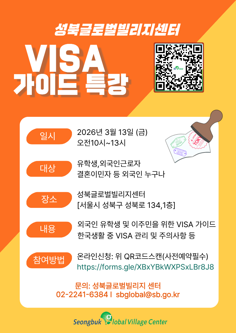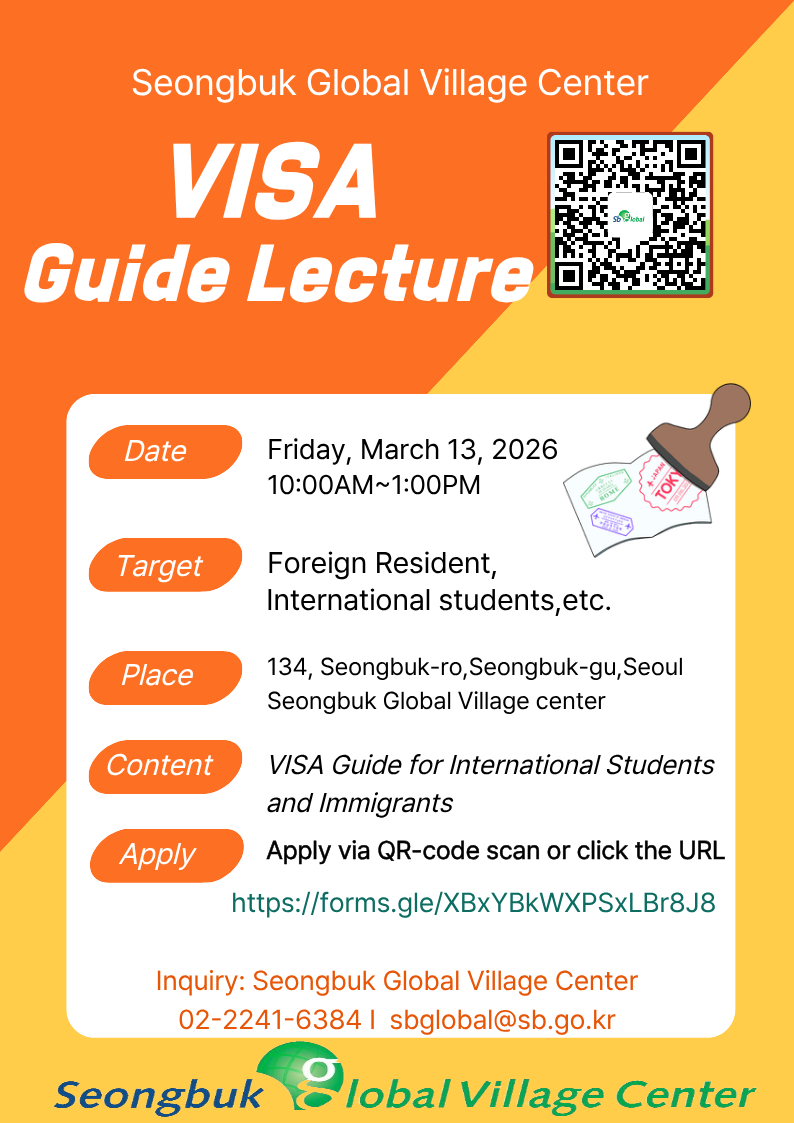 [홍보] 외국인 유학생 및 이주민을 위한 VISA 가이드 특강 수강생 모집
