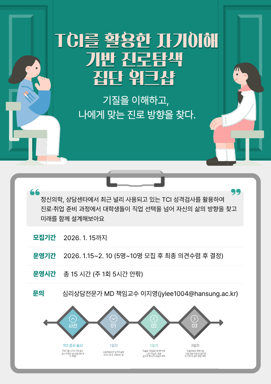 · 프로그램 시작 전 TCI 성격검사 온라인 실시 |