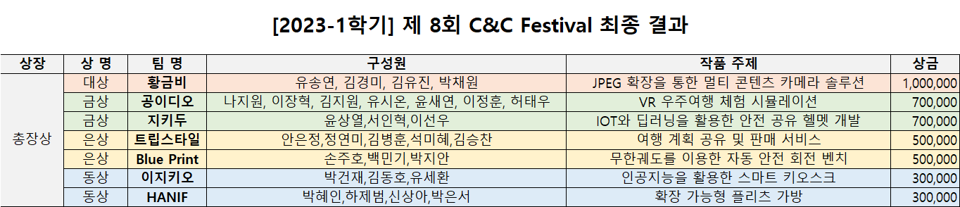 2023학년도 1학기 C&C Festival 최종 결과를 발표합니다.