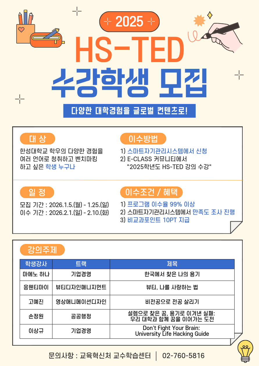 [학습지원] 2025학년도 2학기 HS-TED 수강학생 모집