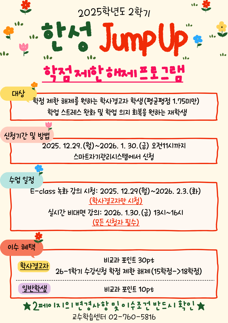 [학습지원] 2025학년도 2학기 한성 JUMP UP