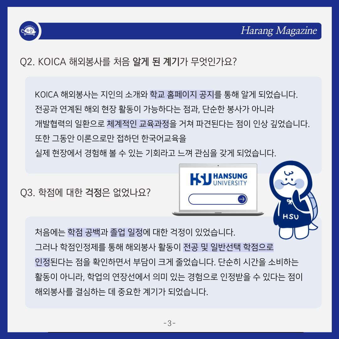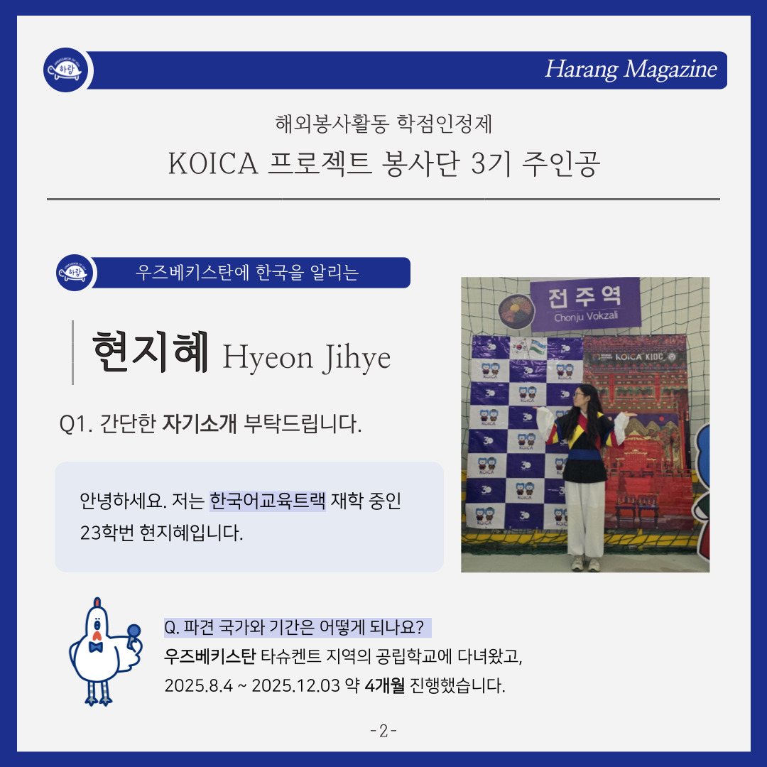 #한성대학교 #홍보대사 #하랑 #세상에이런한성인이 #인터뷰 #KOICA #해외봉사 #우즈베키스탄 #대학생 #도전 #성장 #학점인정 #청년중기봉사단