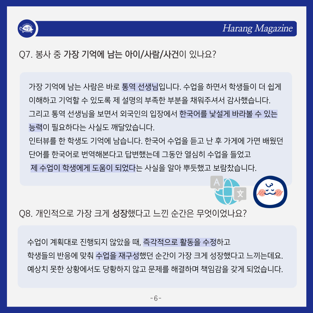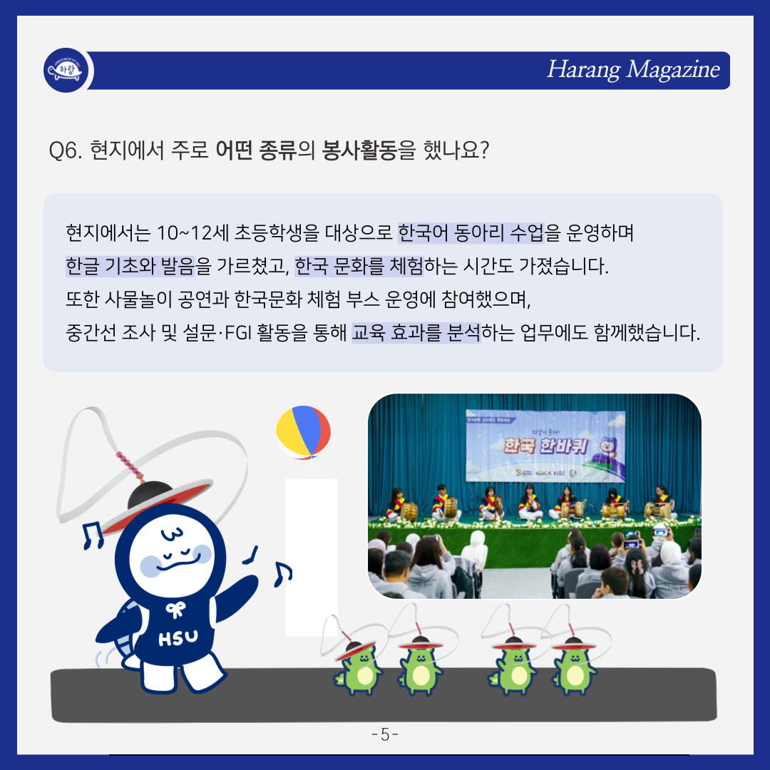 📍실무 역량: 현지 초등학생 대상 한국어 수업 및 문화 교육 프로그램 운영