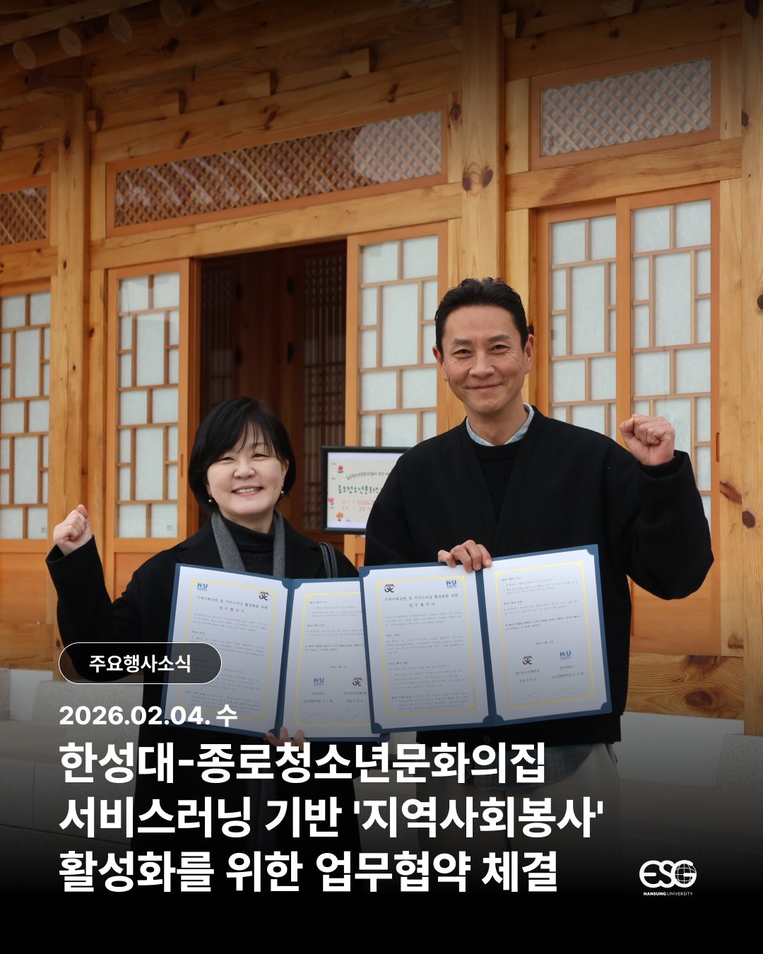 2026년 2월 4일, 한성대학교와 종로청소년문화의집이 지역사회 공헌 및 인재 양성을 위한 업무협약을 체결했습니다!🤝