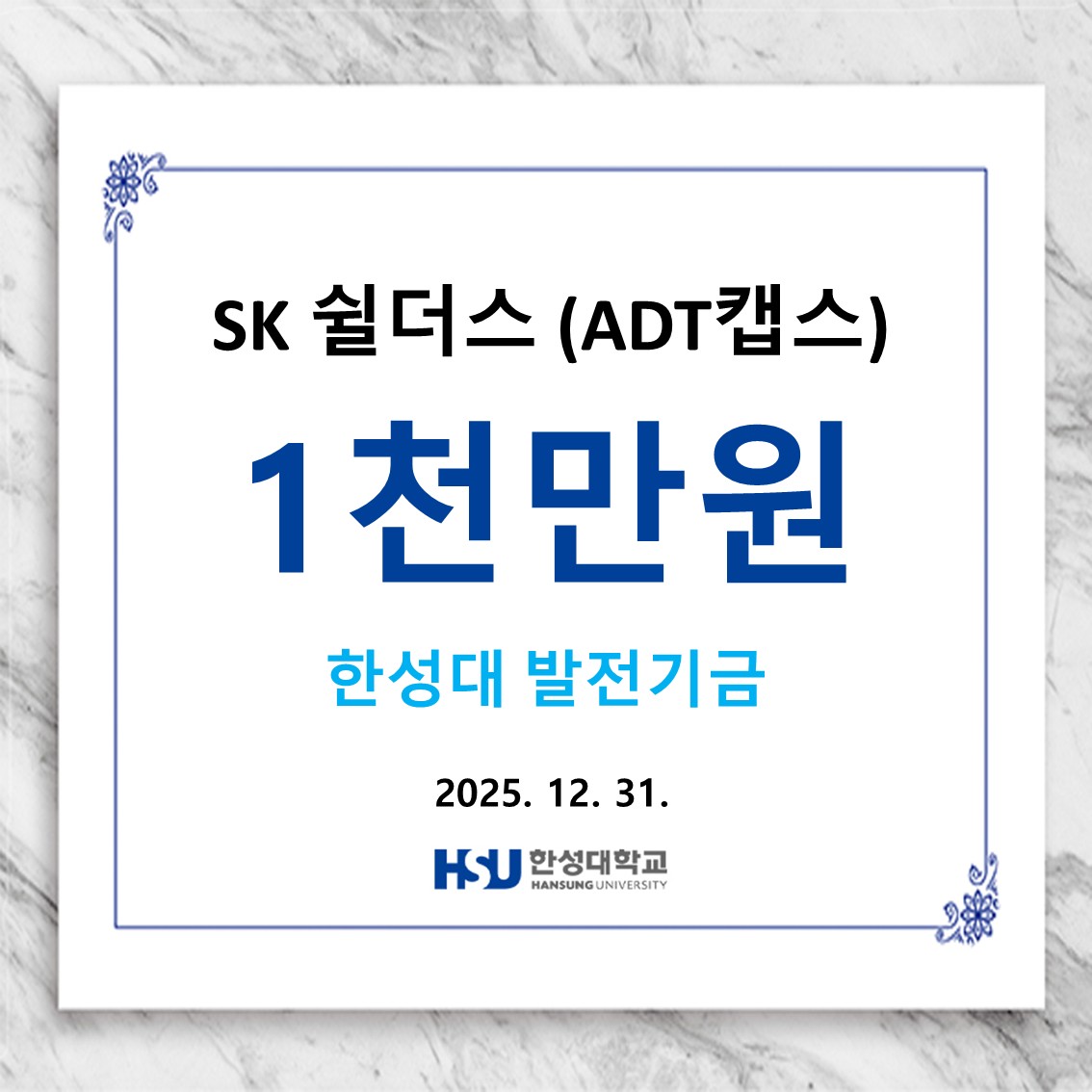 SK쉴더스 (ADT캡스) 천만원 한성대 발전기금 납부