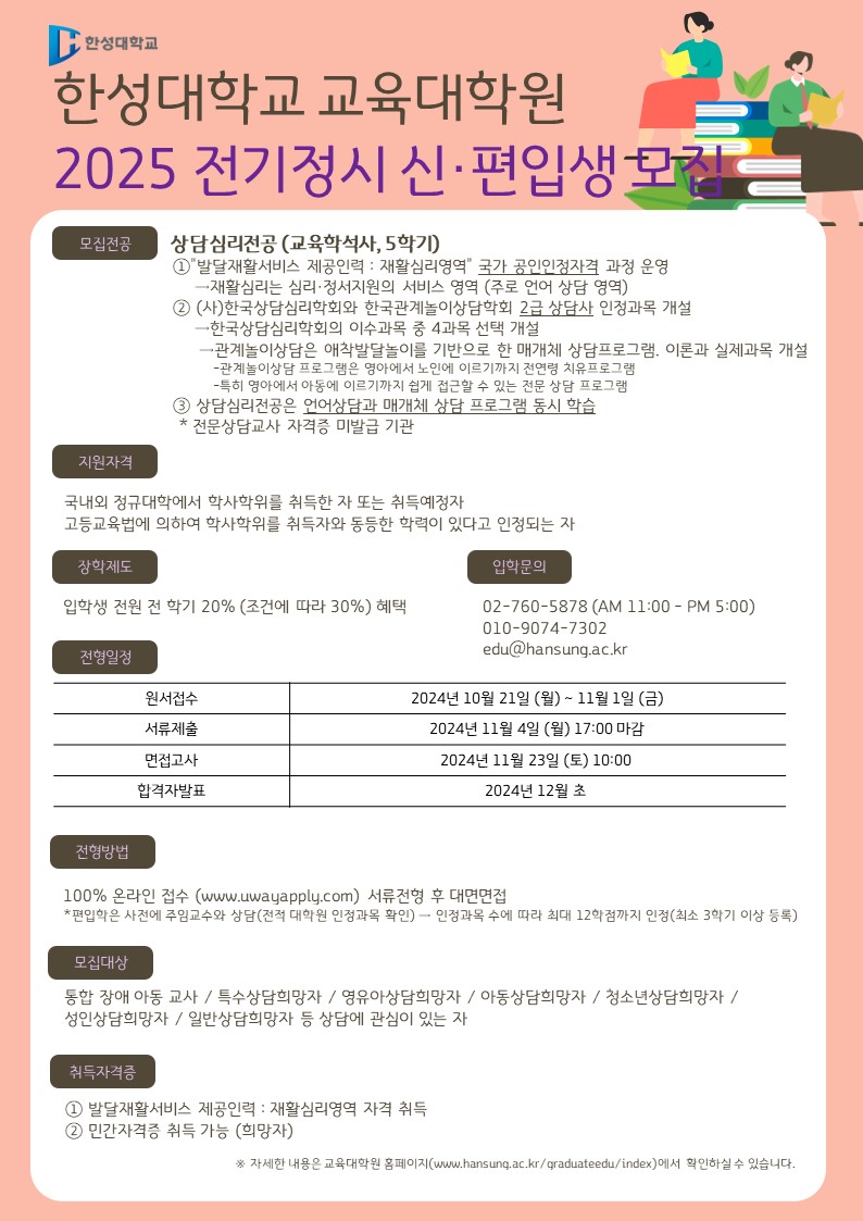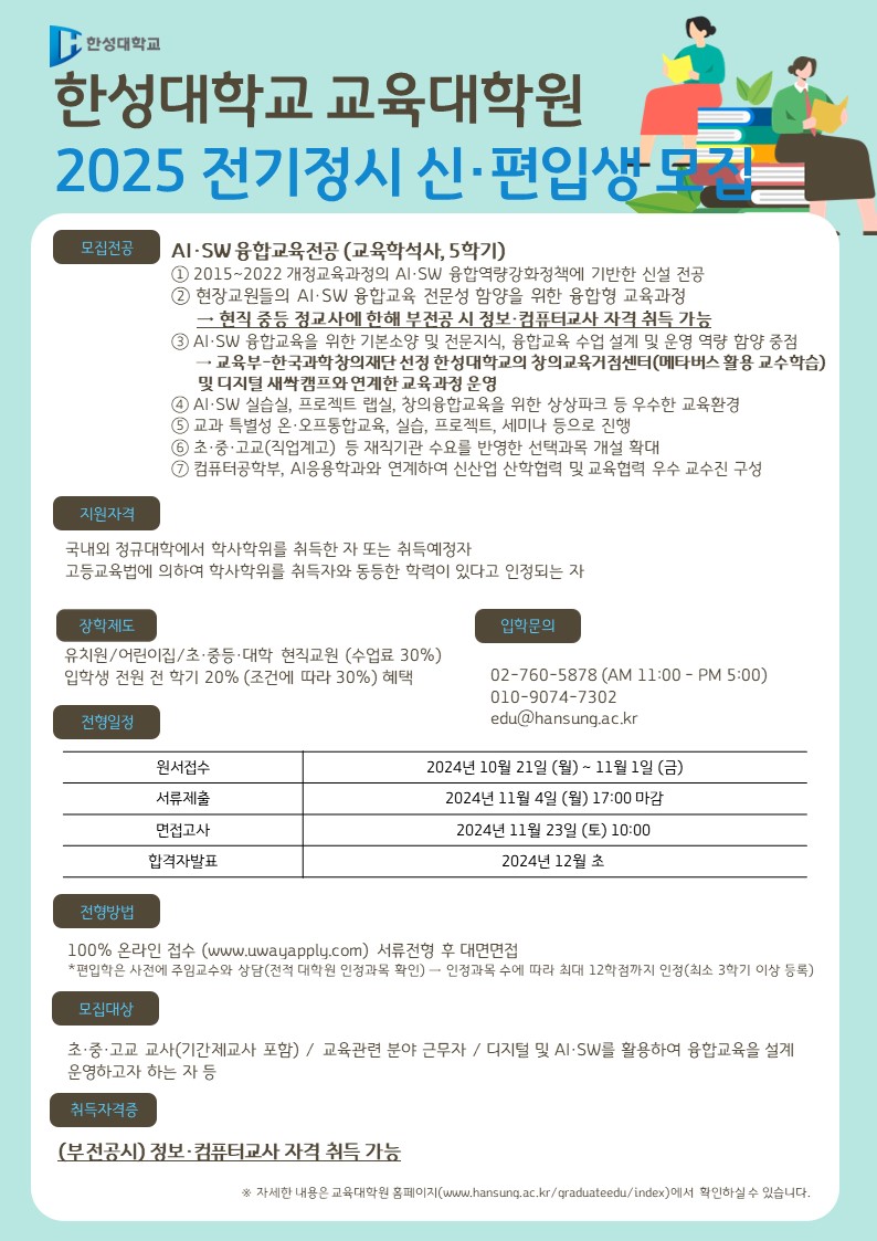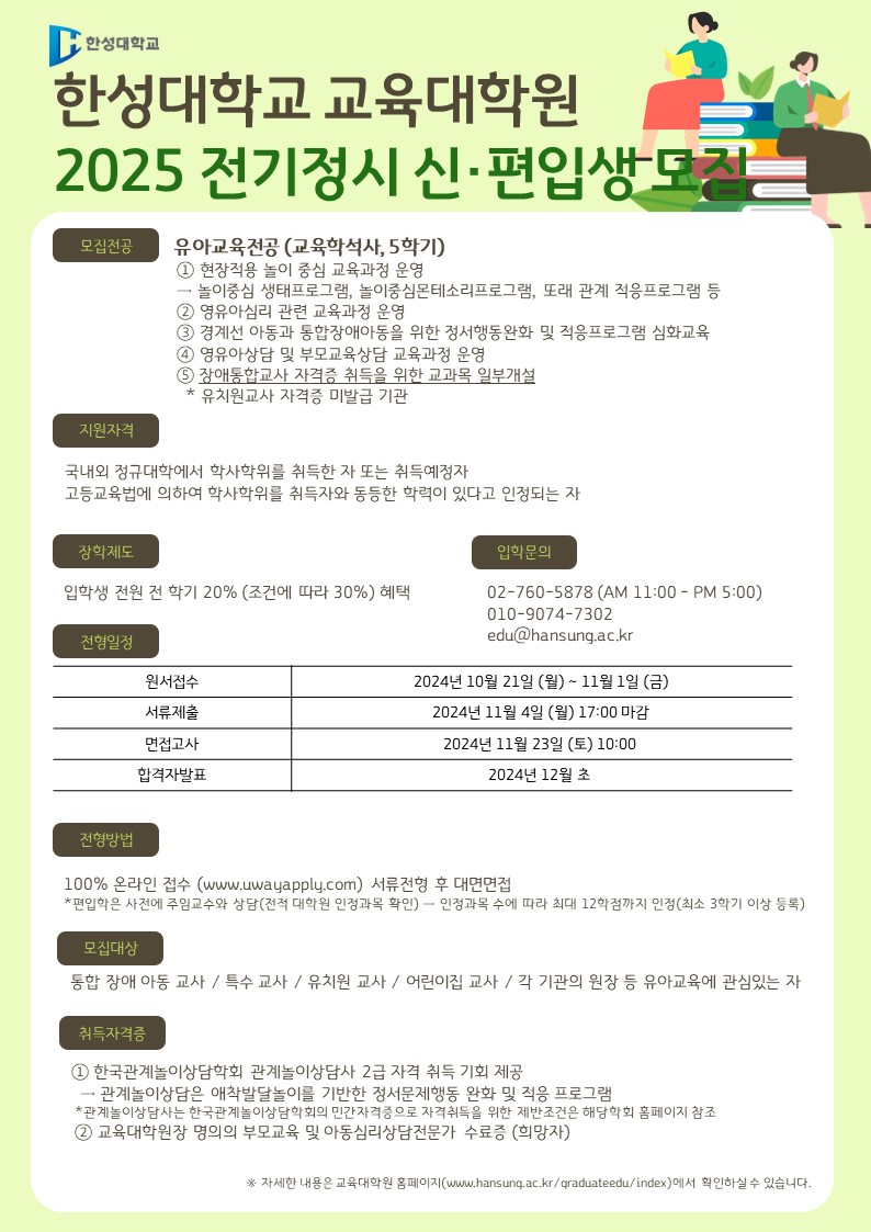 한성대학교 교육대학원 2025학년도 전기정시 신편입생 모집 일정