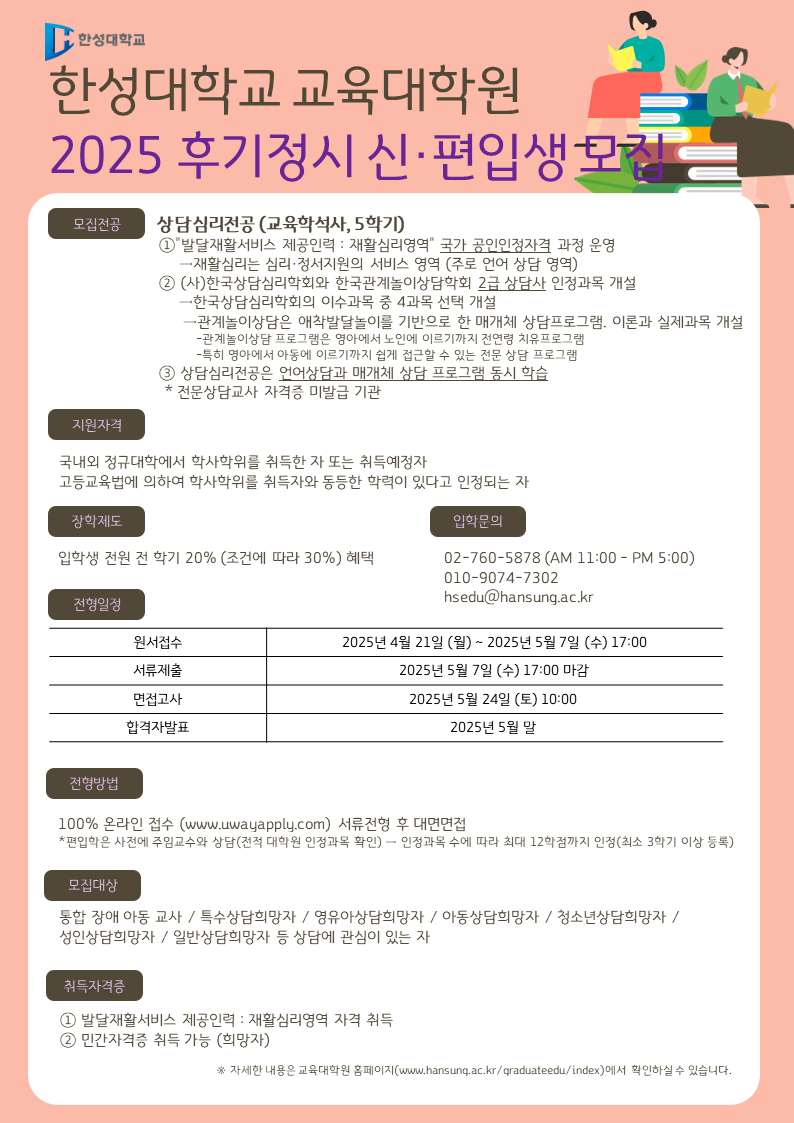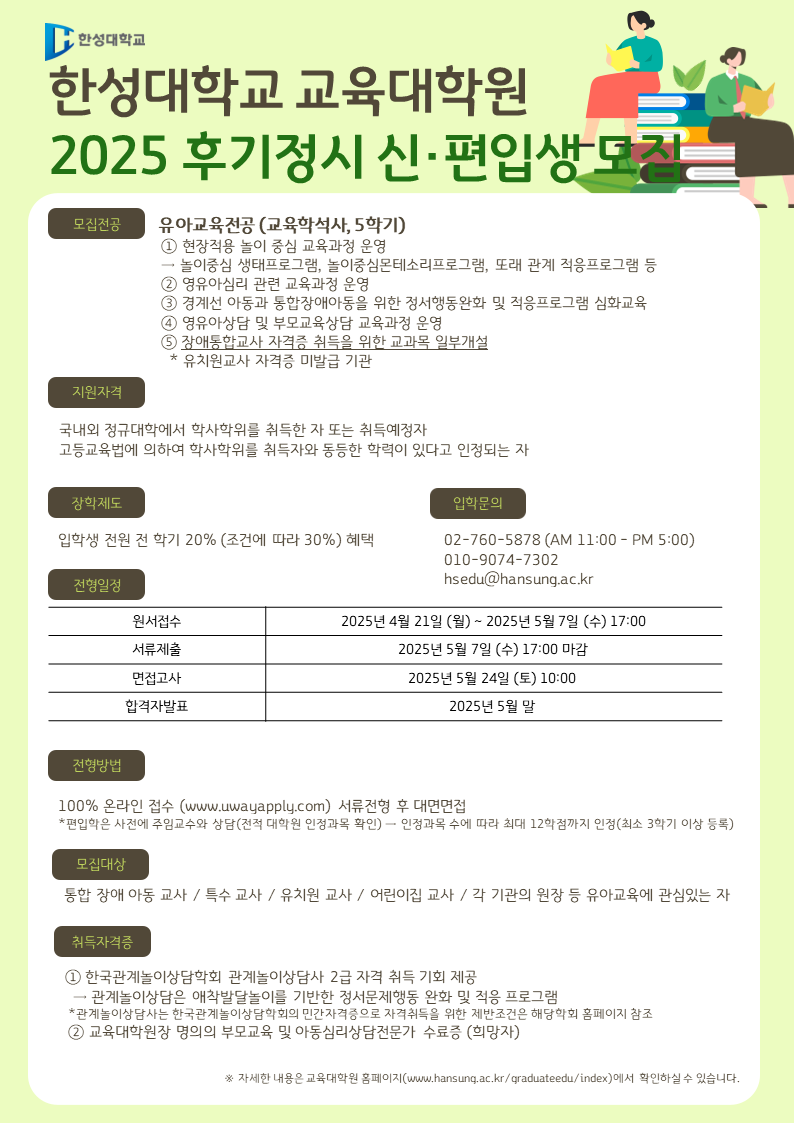 한성대학교 교육대학원 2025학년도 후기정시 신편입생 모집 일정