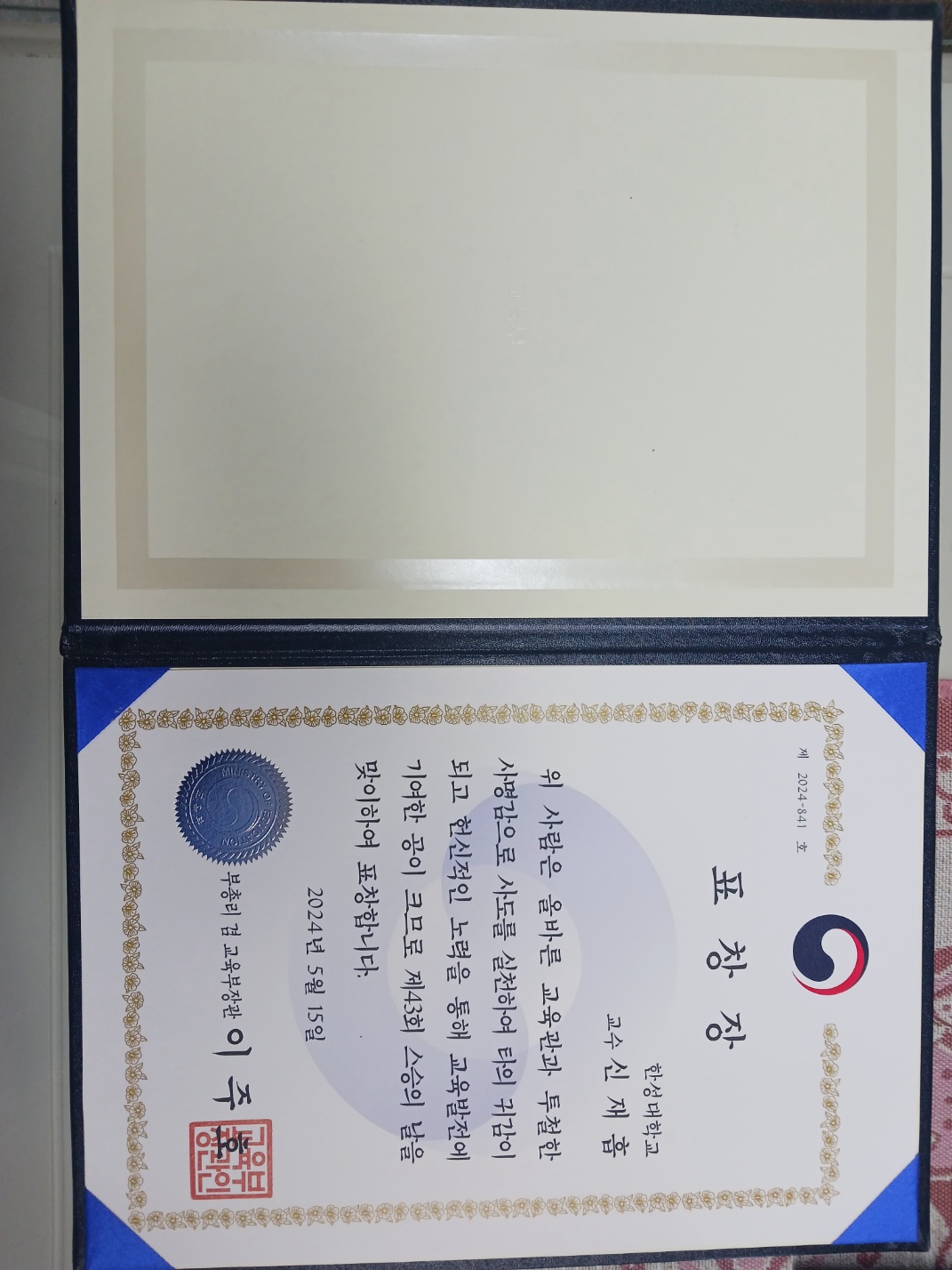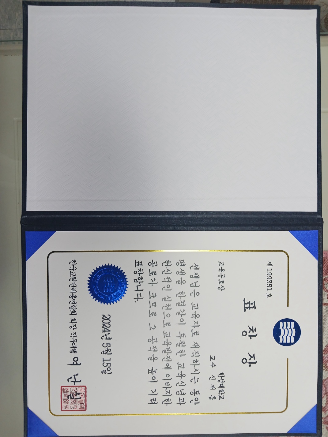 2024년 5월15일 스승의 날 신재흡원장 표창장