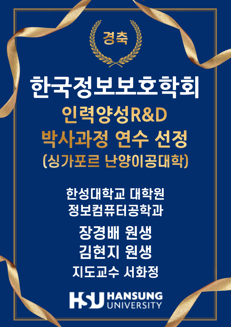 정보컴퓨터공학과 장경배·김현지 원생, 한국정보보호학회 인력양성 R&D 박사과정 연수 선정