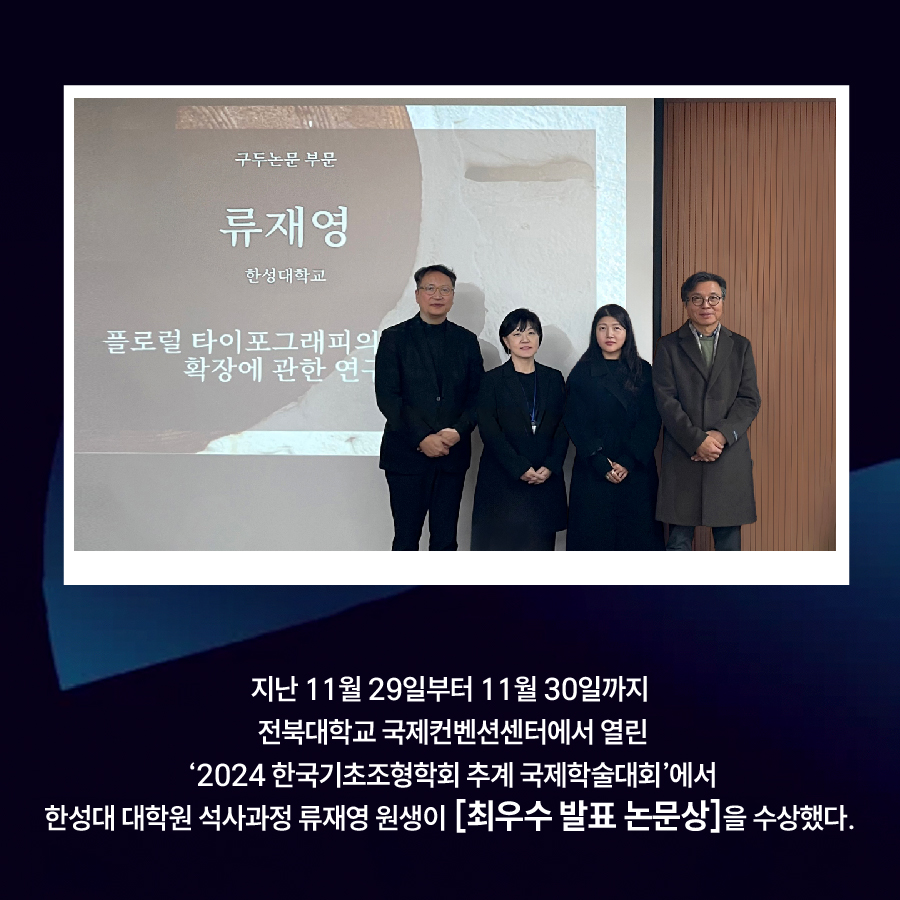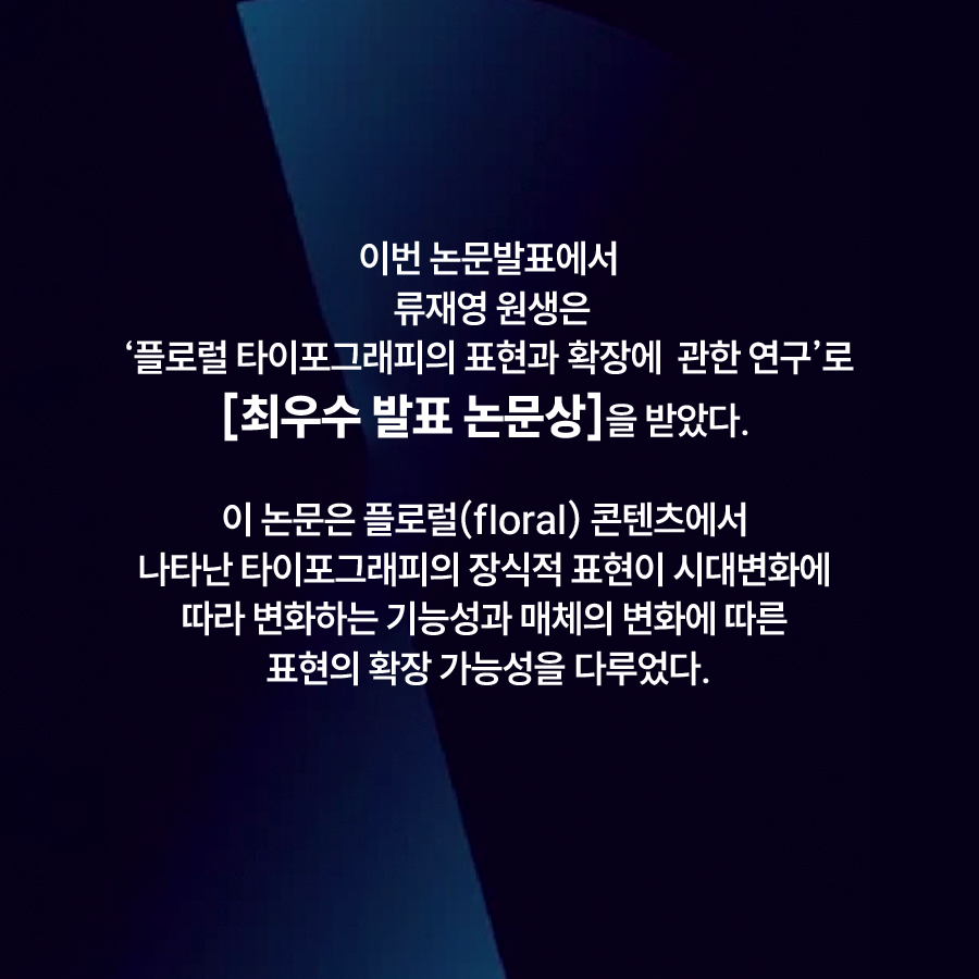 미디어디자인학과 시각커뮤니케이션디자인전공 류재영 원생, 2024 한국기초조형학회 추계학술대회 최우수 발표논문상 수상