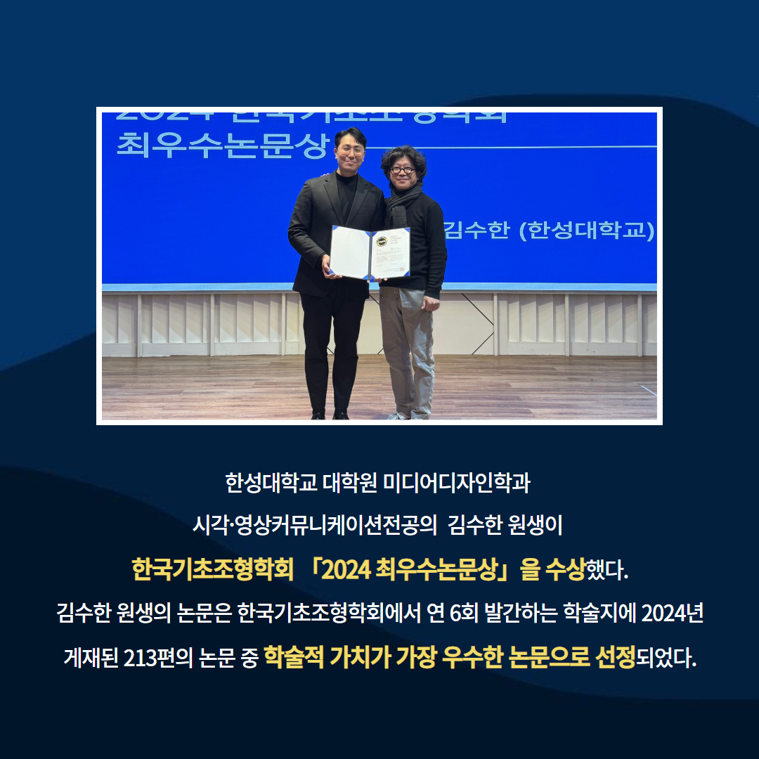 미디어디자인학과 시각커뮤니케이션디자인전공 김수한 원생, 한국기초조형학회 「2024 최우수논문상」수상