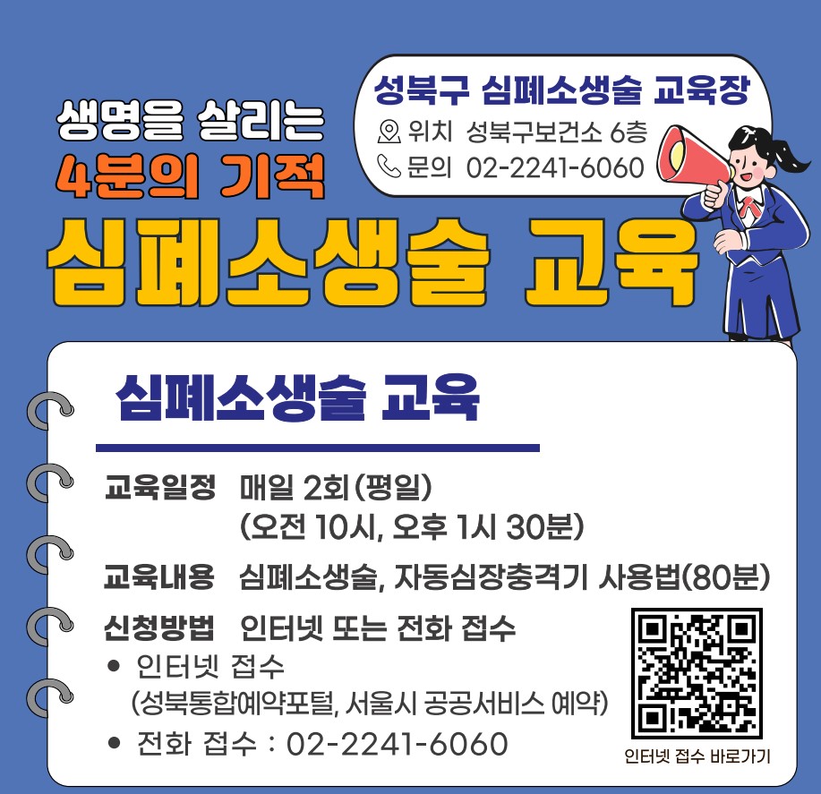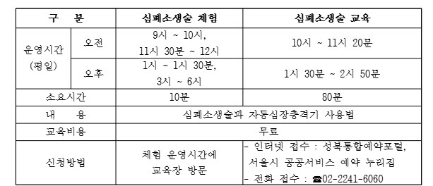 나. 문 의 : 성북구보건소 의약과(심폐소생술 교육장) ☎02-2241-6060