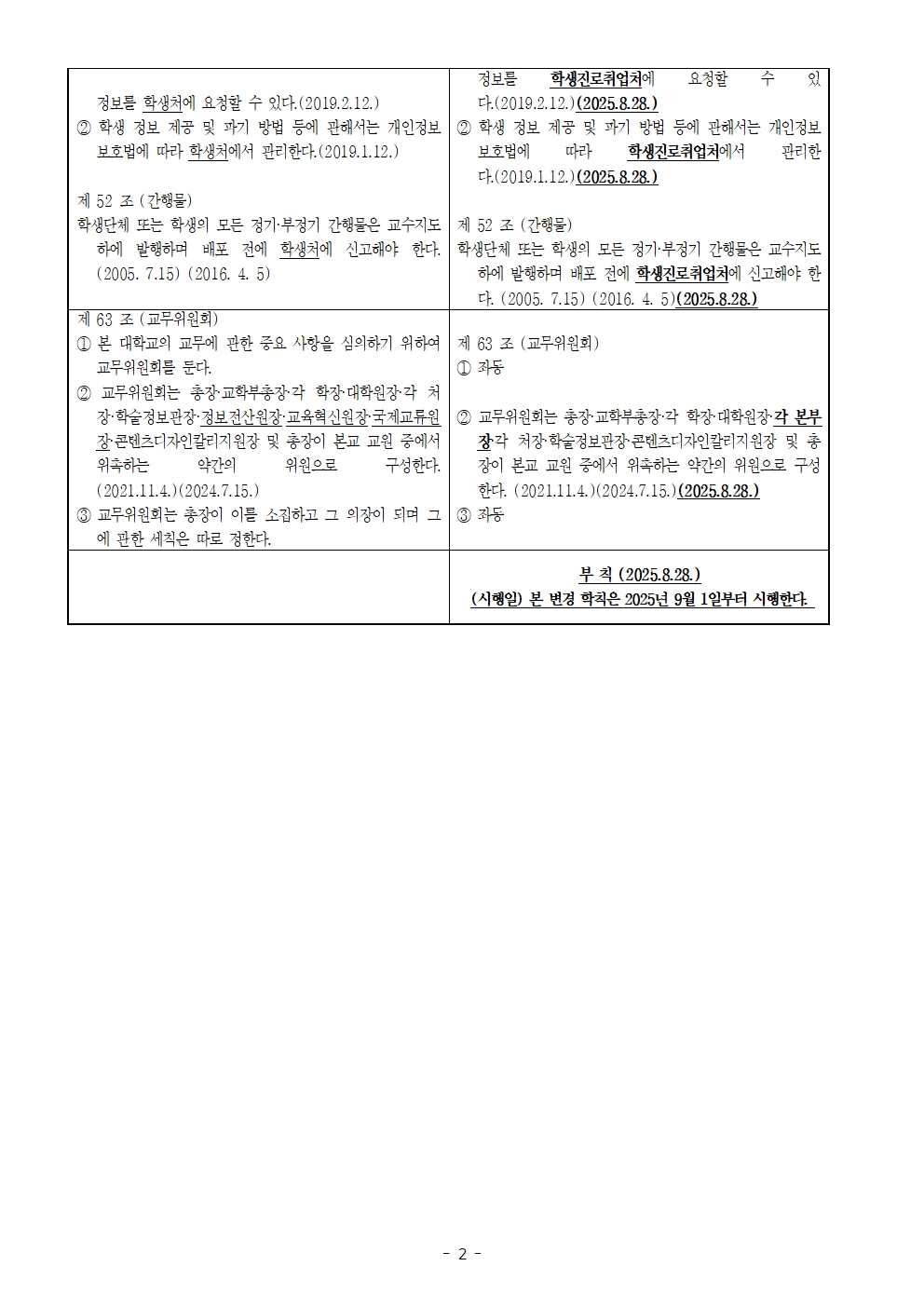 학칙 개정 공포