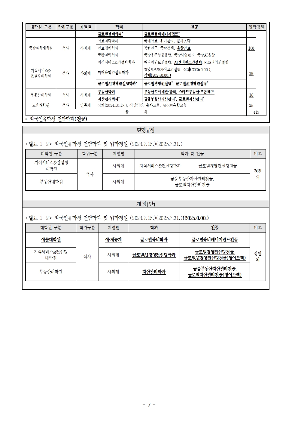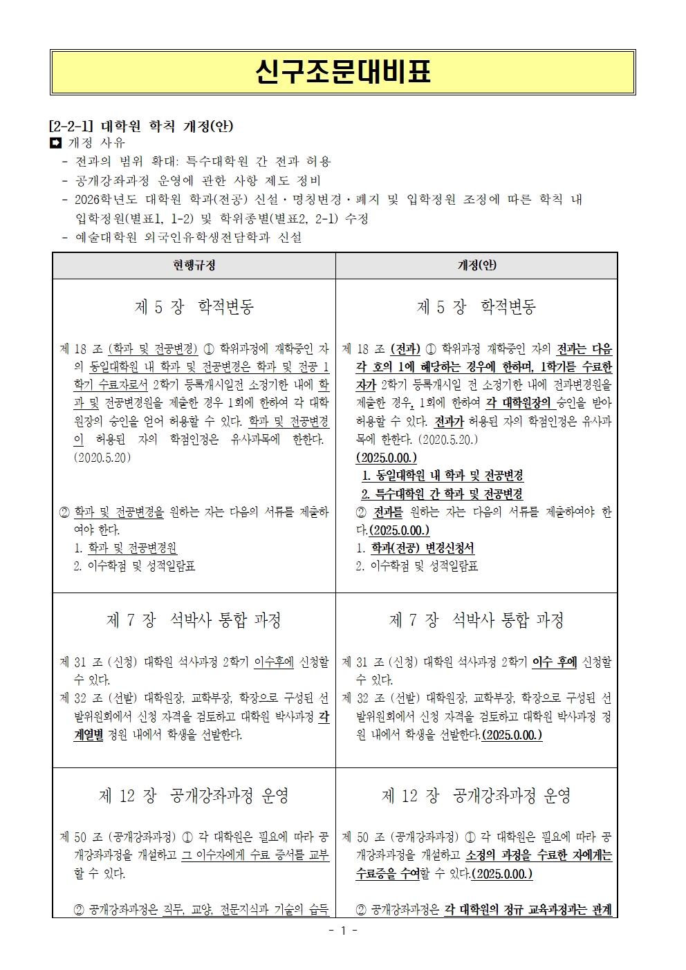 학칙 개정(안) 공고
