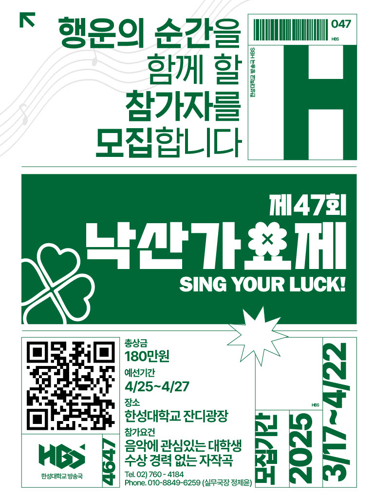 한성대학교 방송국 HBS에서 제47회 낙산가요제 참가자를 모집합니다! 🎤🎶
