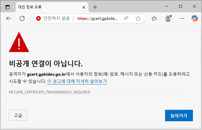GSSL이 적용된 사이트는 "보안경고창"이 발생하고 있습니다.