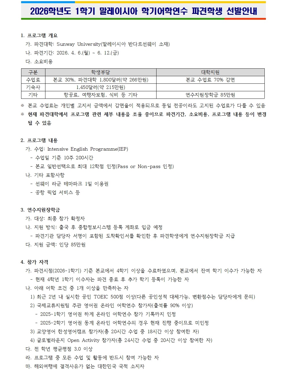 [붙임1] 2026학년도 1학기 말레이시아 학기어학연수 파견학생 선발안내.pdf
