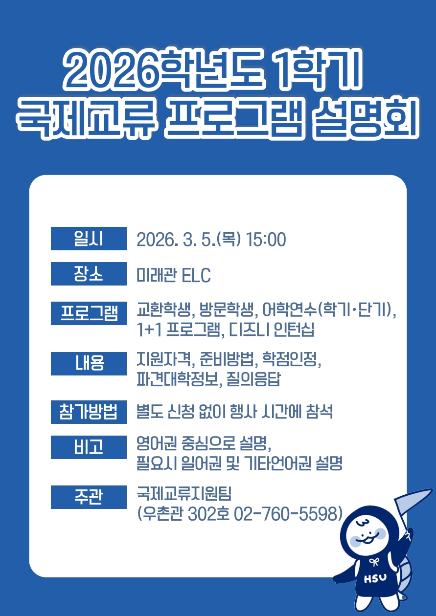 2026학년도 1학기 국제교류 프로그램 설명회 개최 안내