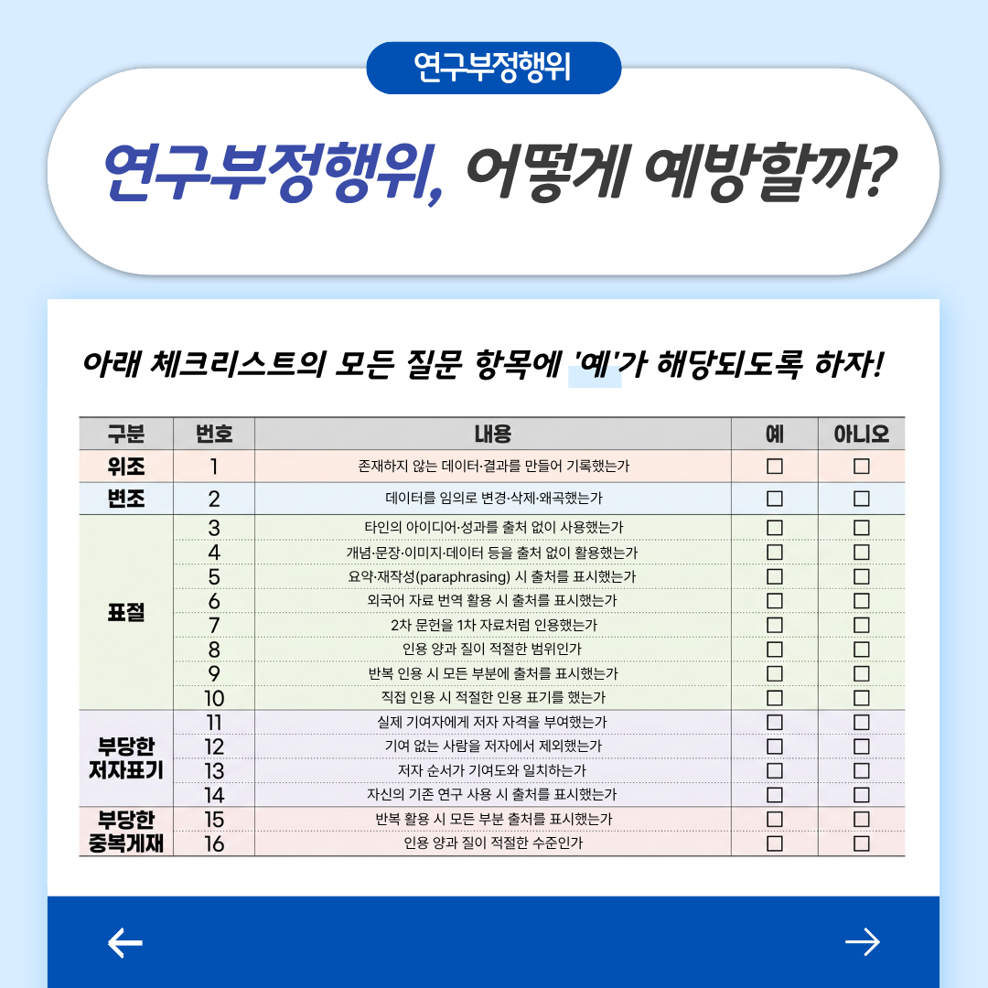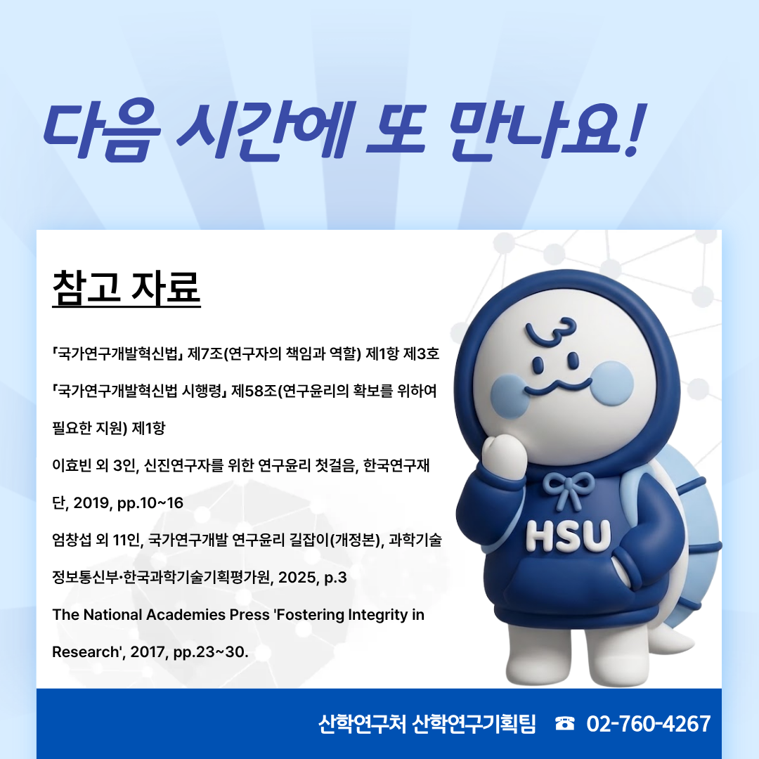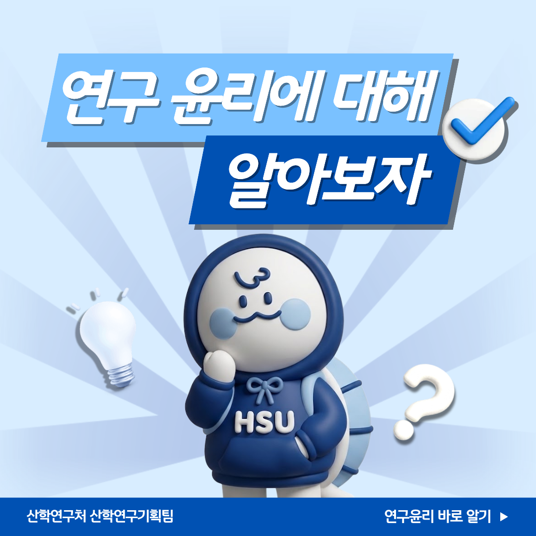 앞으로도 지속적인 연구윤리 관련 안내를 통해 건전한 연구문화를 조성해 나가겠습니다:)