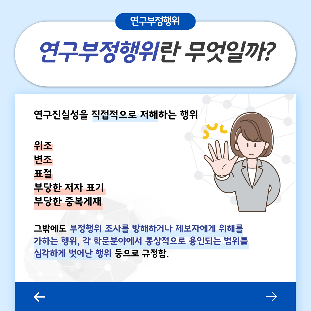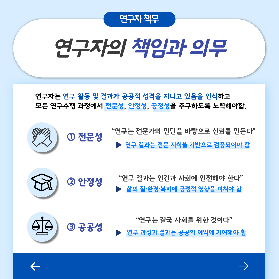 연구윤리의 기본 개념을 쉽게 이해할 수 있도록 카드뉴스를 제작하였습니다.