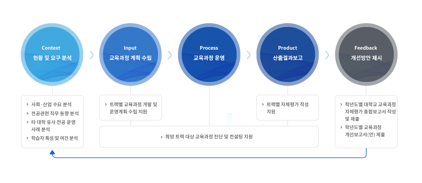 - 단과대학 교육과정위원회와 연계하여 희망 트랙을 대상으로 교육과정 진단 및 컨설팅 지원