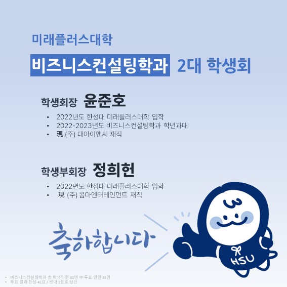 미래플러스대학 비즈니스컨설팅학과 제 2대 학생회 당선- 작성자 미래플러스대학 교학팀