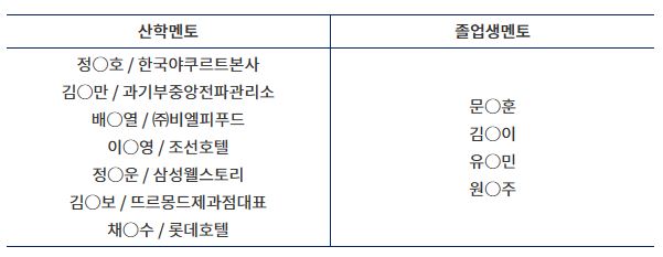 산학 및 졸업생 멘토 풀 현황