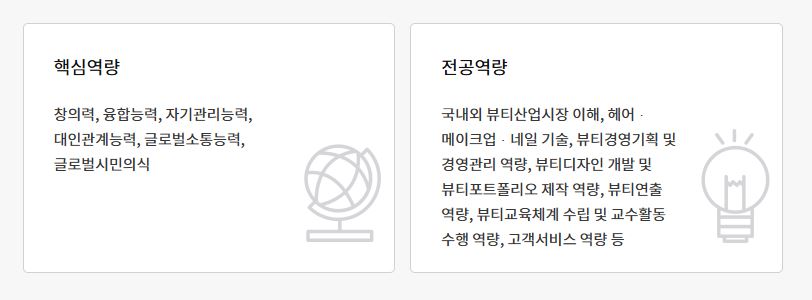 트렌드를 반영한 메이크업, 헤어, 피부, 네일 등의 체계적이고 전문적인 기술 역량을 갖춘 실무형 전문가를 양성하며, 고도화된 뷰티디자인 감각과 창의적 표현능력을 통해 경쟁력 있는 K-뷰티 전문가를 배출하고자 합니다.