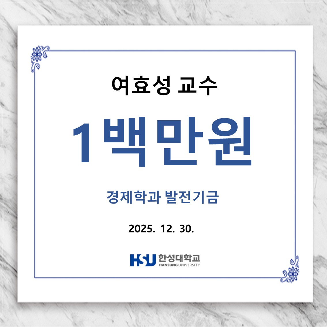 여효성교수 경제학과 발전기금 100만원 기부- 작성자 글로컬상생홍보팀