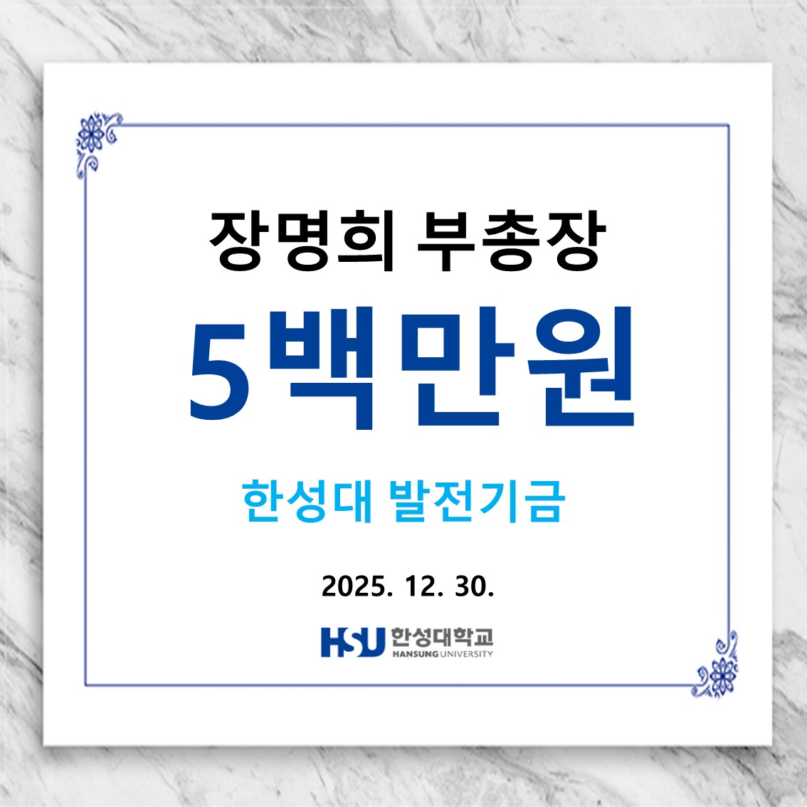 장의성 교수 한성대 발전기금 100만원 기부- 작성자 글로컬상생홍보팀