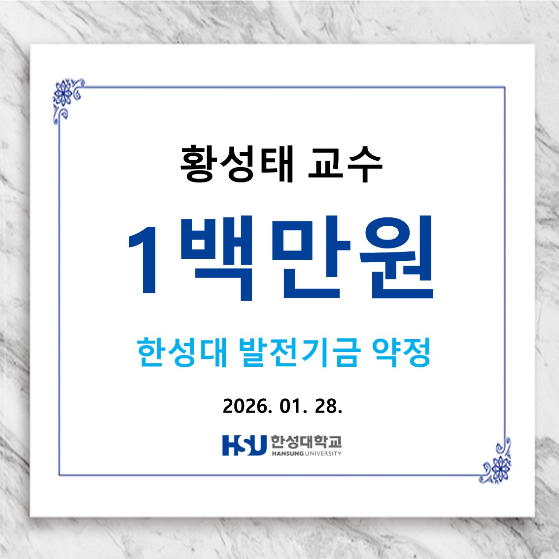 황성태 교수 한성대 발전기금 100만원 약정- 작성자 글로컬상생홍보팀