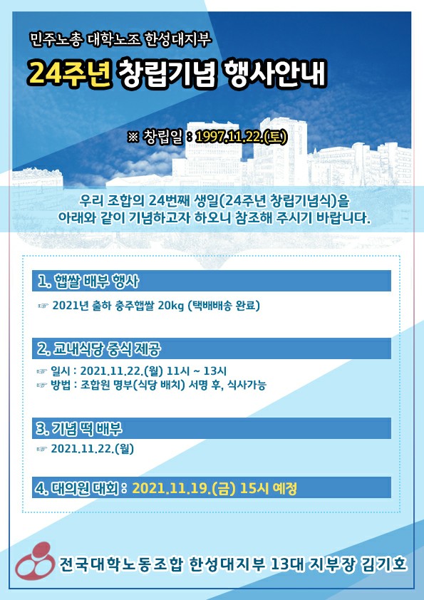전국대학노동조합 한성대지부 창립 23주년 기념_(2020.11.24)- 작성자 박지예